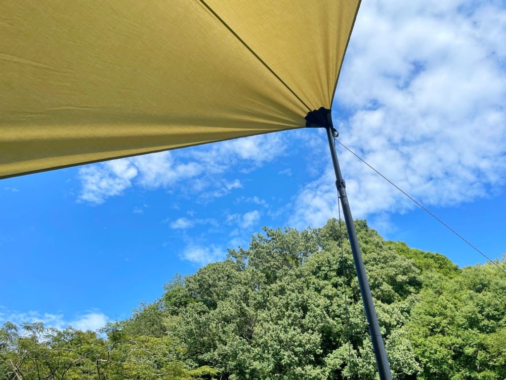 日陰のない屋外でのバーベキューの場合、タープテントで日陰を作りましょう。